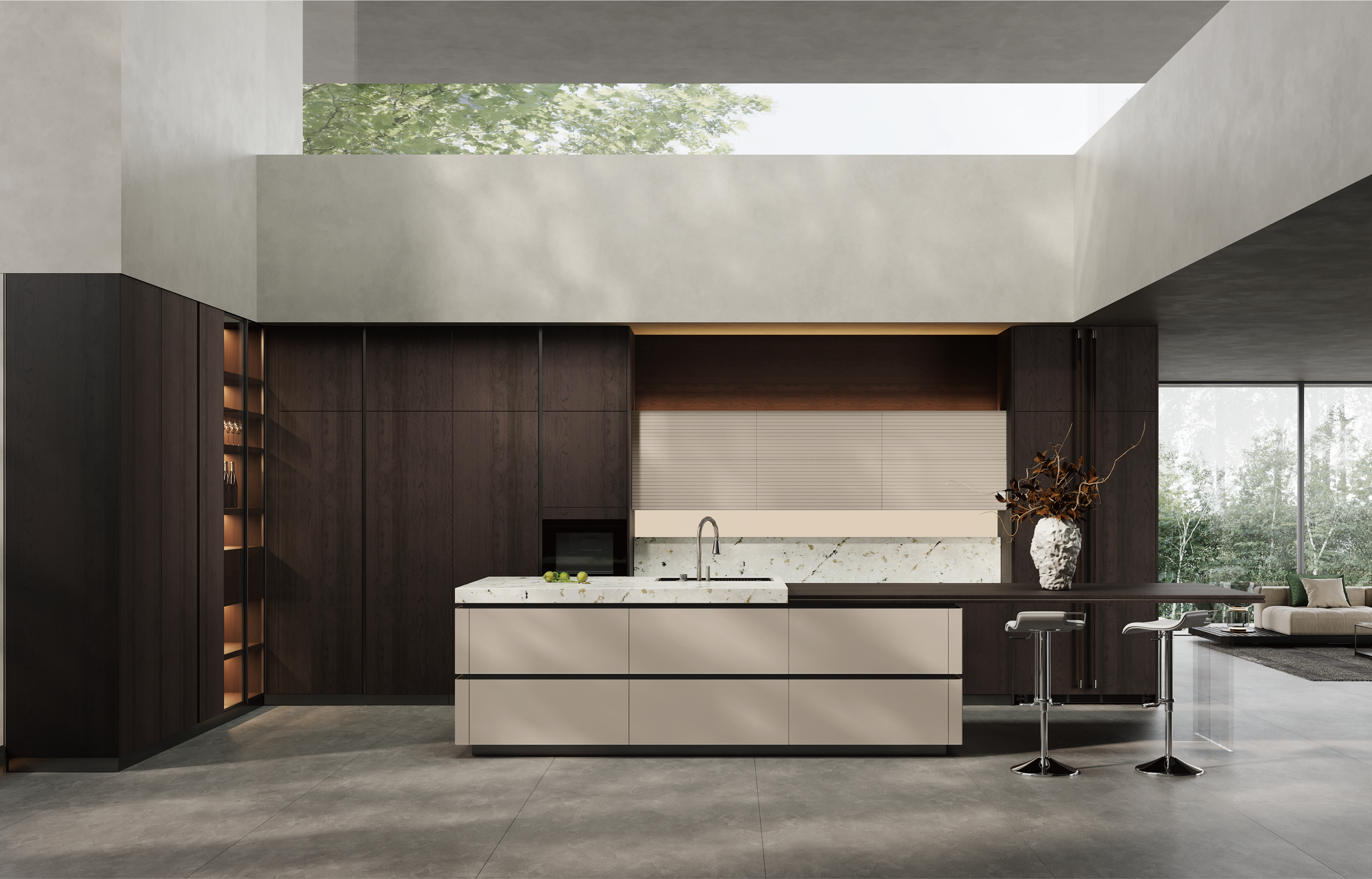通过开元ky厨柜量体裁柜,定制出适合主厨下厨的烹饪区和洗涤区的舒适高度。
